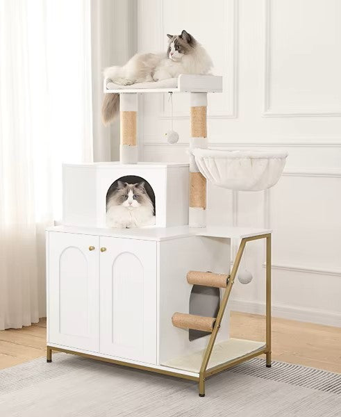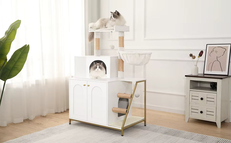 La maison pour chat intégrée crée un refuge calme et sécurisé, idéal pour les chats qui aiment se sentir protégés et observer leur environnement à leur rythme.
