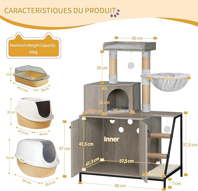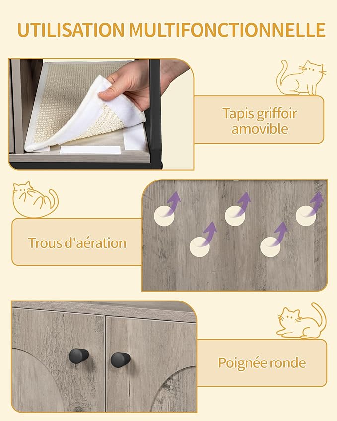 Idéal pour les chats souhaitant un espace pour jouer, se reposer et se cacher.