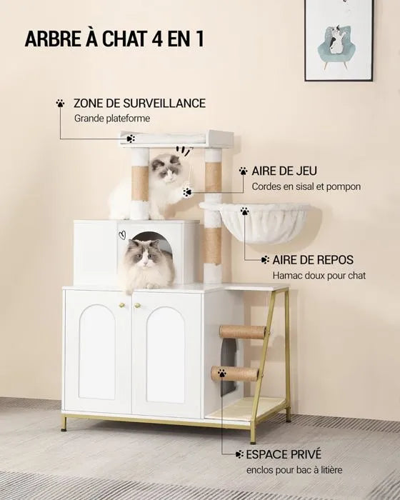 La maison pour chat intégrée crée un refuge calme et sécurisé, idéal pour les chats qui aiment se sentir protégés et observer leur environnement à leur rythme.